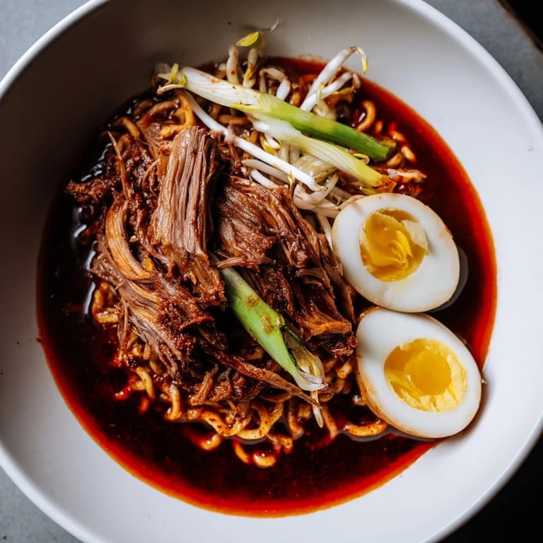 Save I stumbled into birria ramen at 2 a.m. in a cramped Tokyo hostel kitchen, desperate to make something that felt like home while studying abroad. A Mexican roommate shared her abuela's chile paste recipe, and I had this reckless idea to combine it with the instant ramen I'd been surviving on for weeks. What emerged from that midnight experiment was pure alchemy—tender, spiced beef swimming in a broth that somehow bridged two continents on a single spoon. I've been chasing that feeling ever since, perfecting the balance between Mexican warmth and Japanese precision.