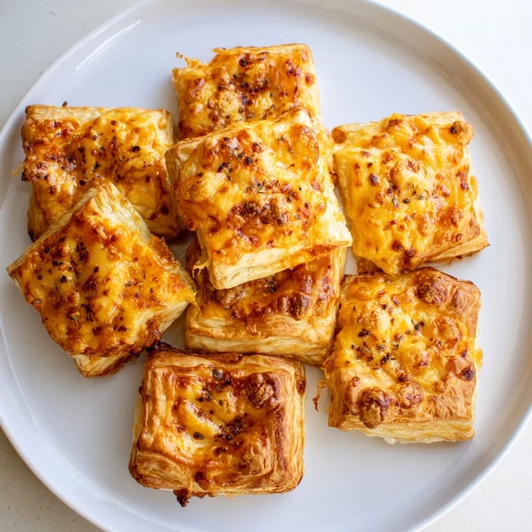 Save Flaky, golden puff pastry bites filled with a blend of cheeses and aromatic spices — a perfect, crowd-pleasing appetizer for any gathering.