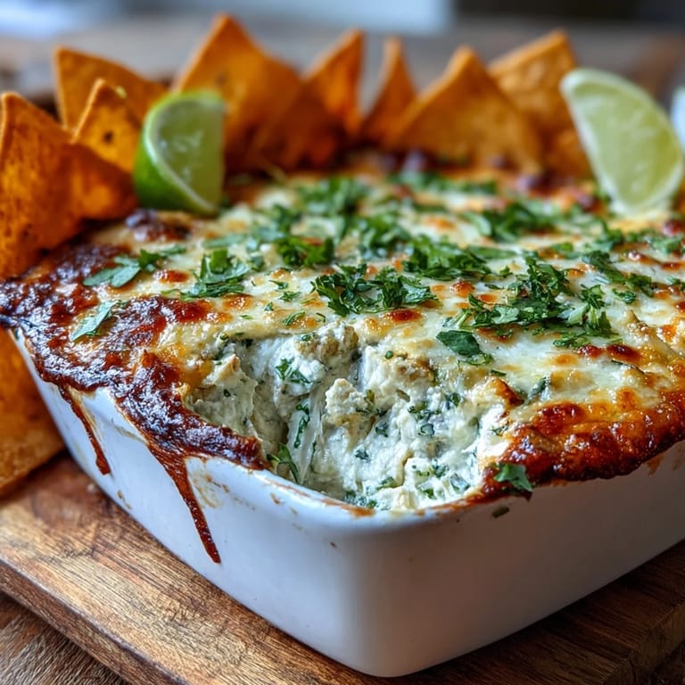 Save The smell of lime zest hitting warm cream cheese is what hooked me on this dip. I was scrambling to pull together something quick for a last-minute watch party, and I had leftover rotisserie chicken sitting in the fridge. I threw in whatever felt right, cilantro, jalapeño, a handful of spices, and when it came out of the oven bubbling and golden, everyone crowded around the counter with chips in hand. It disappeared in minutes, and I've been making it ever since.