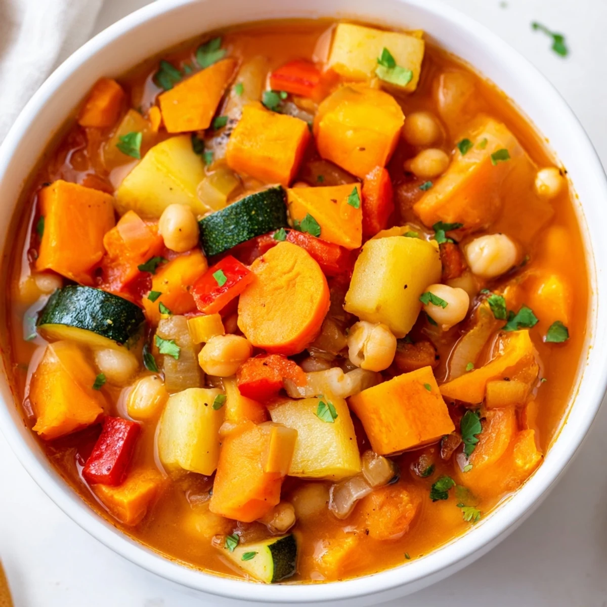 The genius of this recipe is its balance. The sweetness of the sweet potatoes plays beautifully against the earthiness of the beans and the subtle tang of the tomato broth. The variety of textures—some vegetables softening completely while others hold their shape—keeps each spoonful interesting. Most importantly, it's forgiving; you can adjust vegetables based on what's in your kitchen, and the core flavors remain solid.
