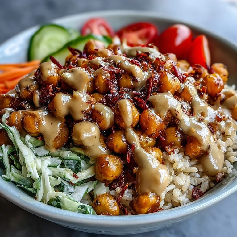 This bowl is equally good served immediately while the chickpeas are still warm and crispy, or assembled cold the next day if you pack the sauce separately. I've found that drinking something with a slight sweetness and acidity—think iced green tea or a crisp white wine if you're in that mood—lets the peanut sauce and spices really sing. The vegetables keep for three days if stored properly, the sauce lasts about a week in the fridge, and the roasted chickpeas are best eaten the same day but won't judge you if you save them for tomorrow.