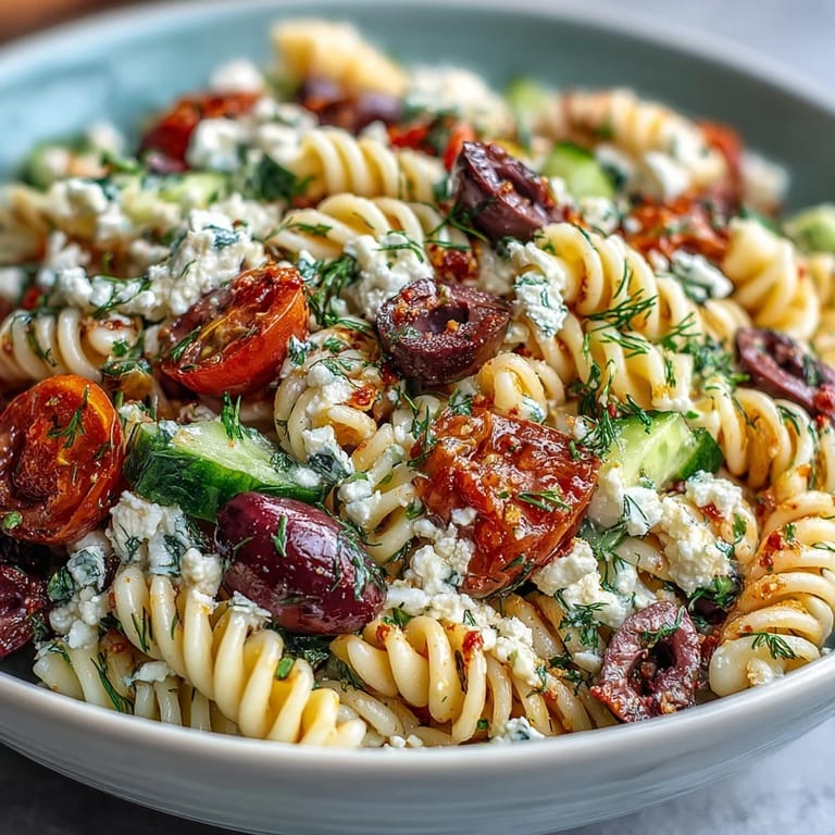 Save The first time I assembled this Greek-style summer pasta salad, sunlight poured onto my kitchen counter, illuminating the jumble of tomatoes and cucumbers I’d just sliced. There’s something especially thrilling about gathering such fresh, vibrant ingredients—my phone buzzed with reminders, but I felt a delicious sense of calm. I always notice how the briny aroma from the olives mingles with tangy feta, hinting at the Mediterranean before even mixing. The salad comes together quickly, almost faster than I expect, like a cheerful chorus of flavors. It’s the dish I reach for when I crave something lively and cool.